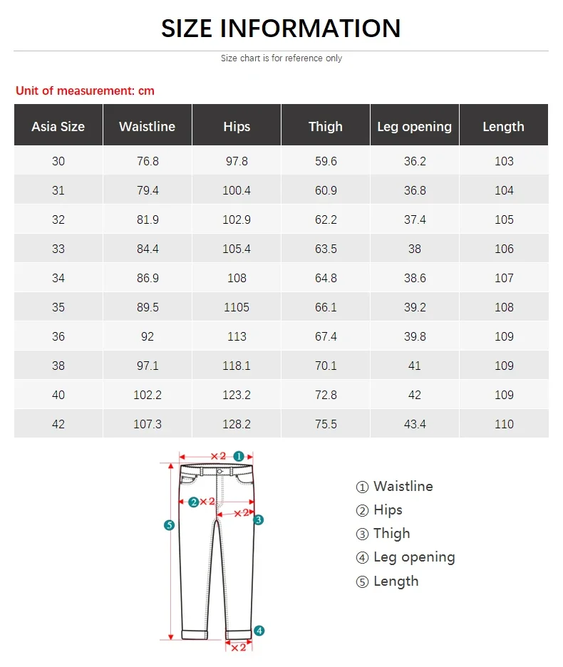 1.O tamanho é chinês, tamanho da calça 32 = 32 polegadas de cintura = 81,5 cm de cintura.